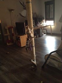 Una de nuestras clientas acudió a Espartería Juan Sánchez buscando una cuerda con la que forrar una columna que tiene en el salón de casa. El objetivo: que los gatos pudieran trepar por ella. Aquí os dejamos unas fotos que nos ha mandado.